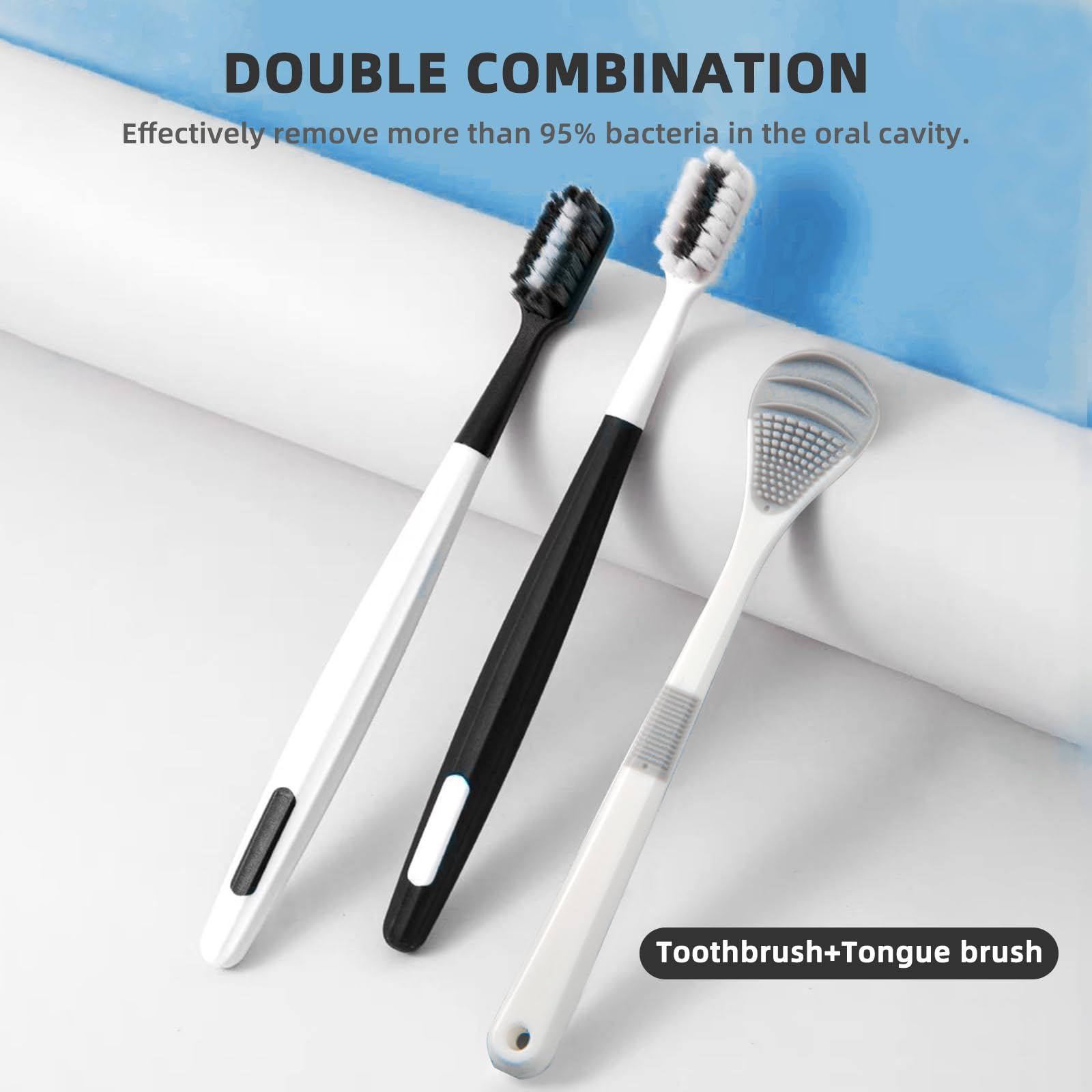 - Deep cleaning: Toothbrushes for sensitive gums and tongue brush can effectively remove 95% of the breath in the mouth,without hurting the gums and avoiding excessive stimulation,suitable for the elderly,pregnant women and people with gingival atrophy