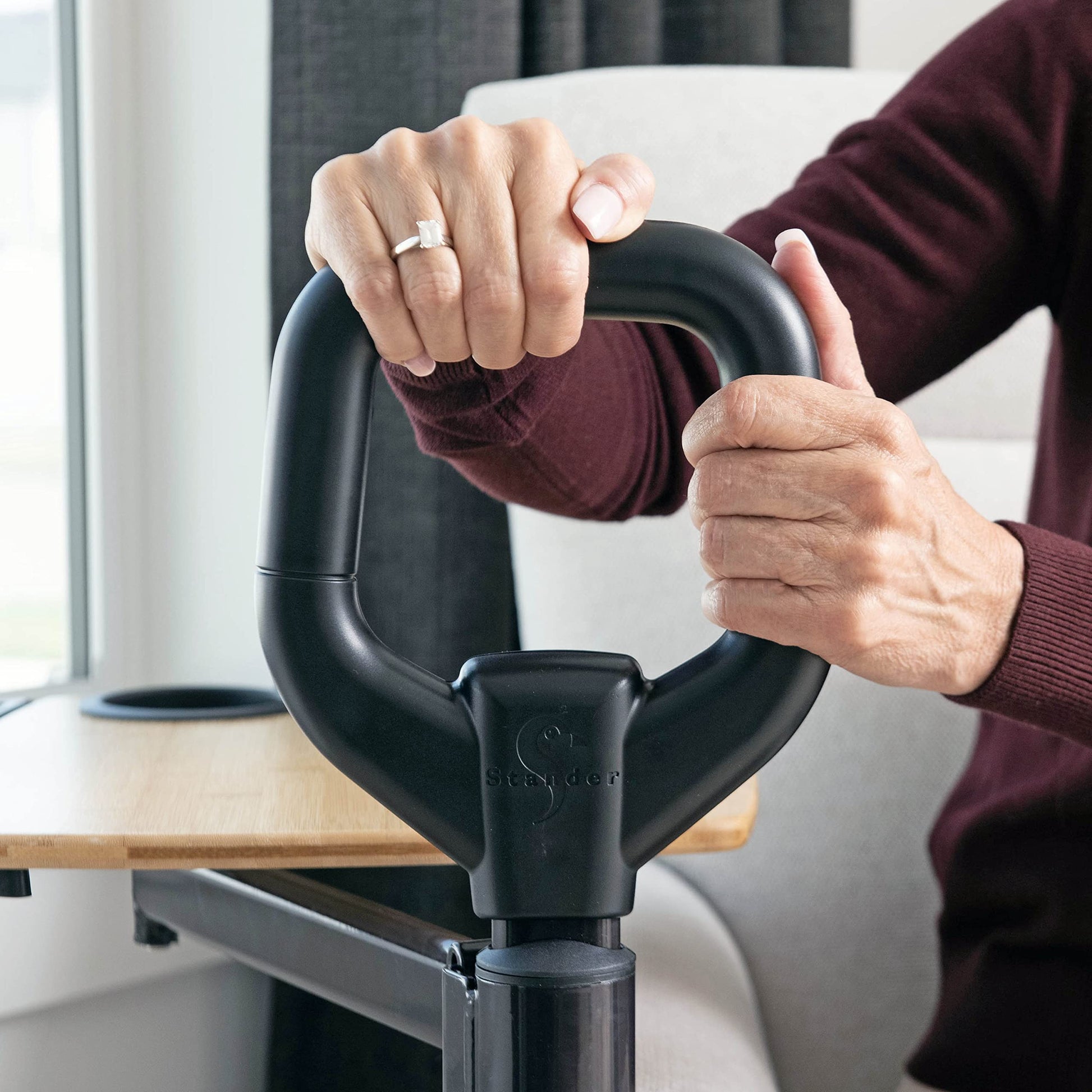 Able Life Able Tray Table, Adjustable Bamboo Swivel TV and Laptop Table with Ergonomic Stand Assist Safety Handle, Independent Living Aid