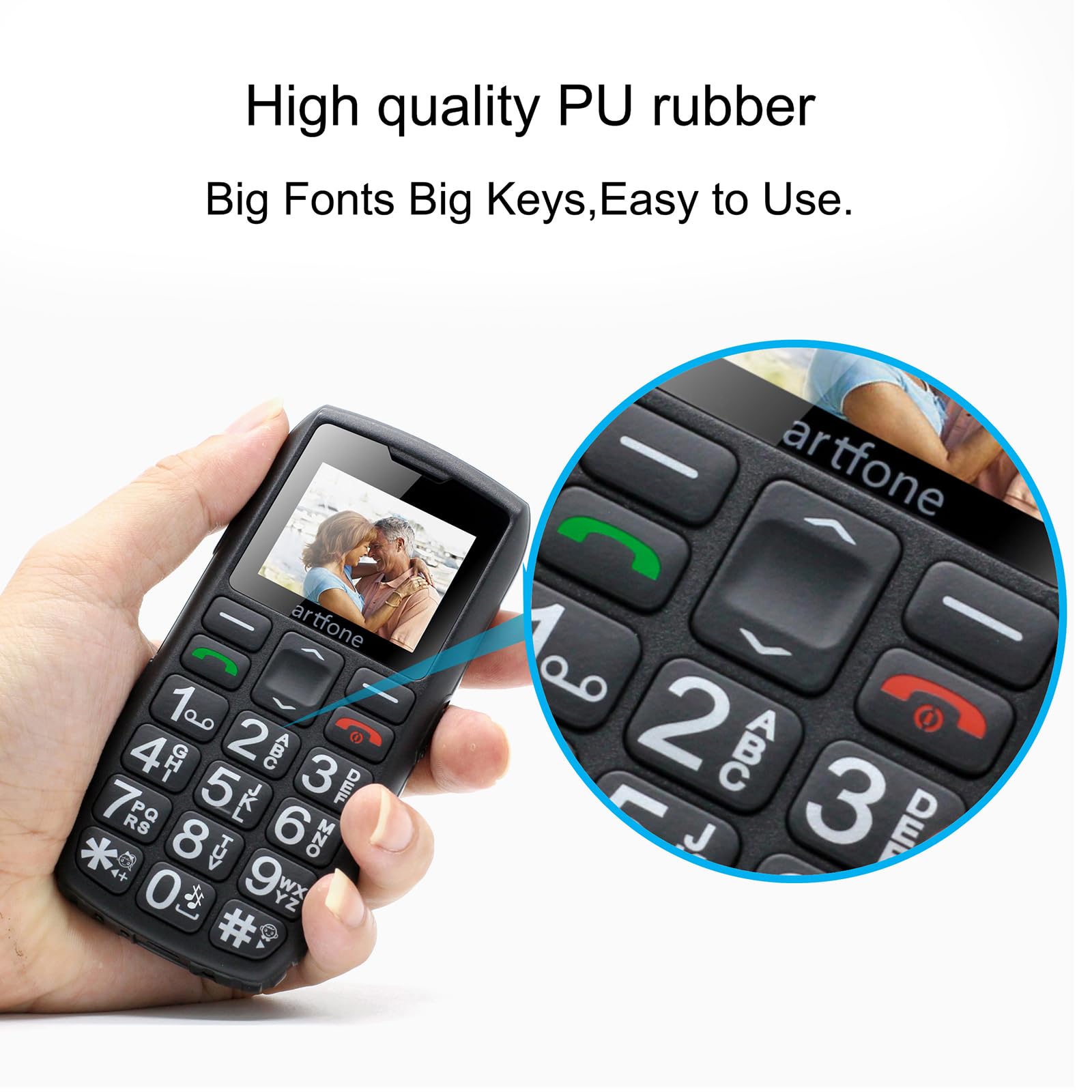 artfone C1+4G Big Button Cell Phone for Seniors丨Unlocked Phones with SOS Button丨1800mAh Battery丨Charging Dock丨Easy-to-Use Dumb Phone with Loud Volume丨Time Reporting丨Speed Dial丨USB-C, Nano SIM - Black