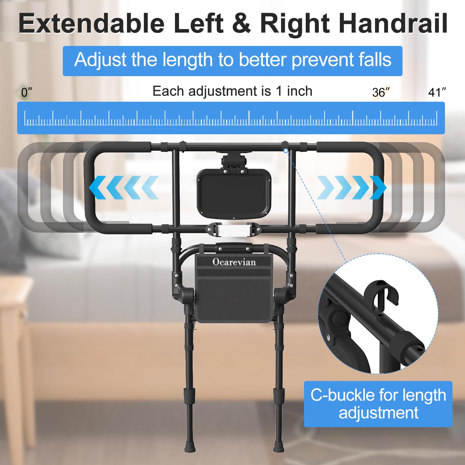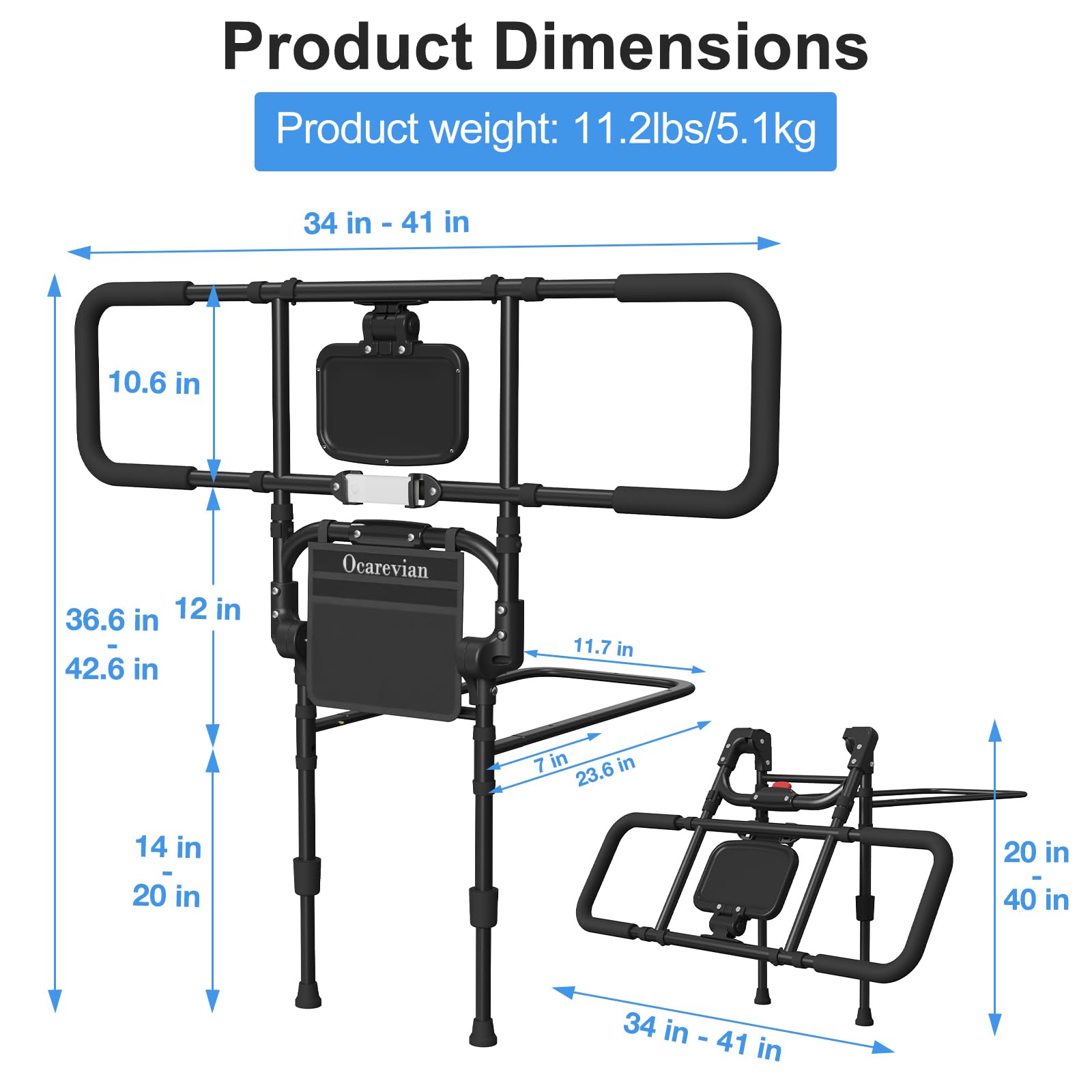 - Flexible Height & Width Adjustment: The bed railing’s height can be adjusted between 36.6" and 42.6" without limitation. The width of the bed assist rail is adjustable from 34’’ to 40’’, and the grab bar handle offers 8 levels of adjustment, each adjustment is 1’’
