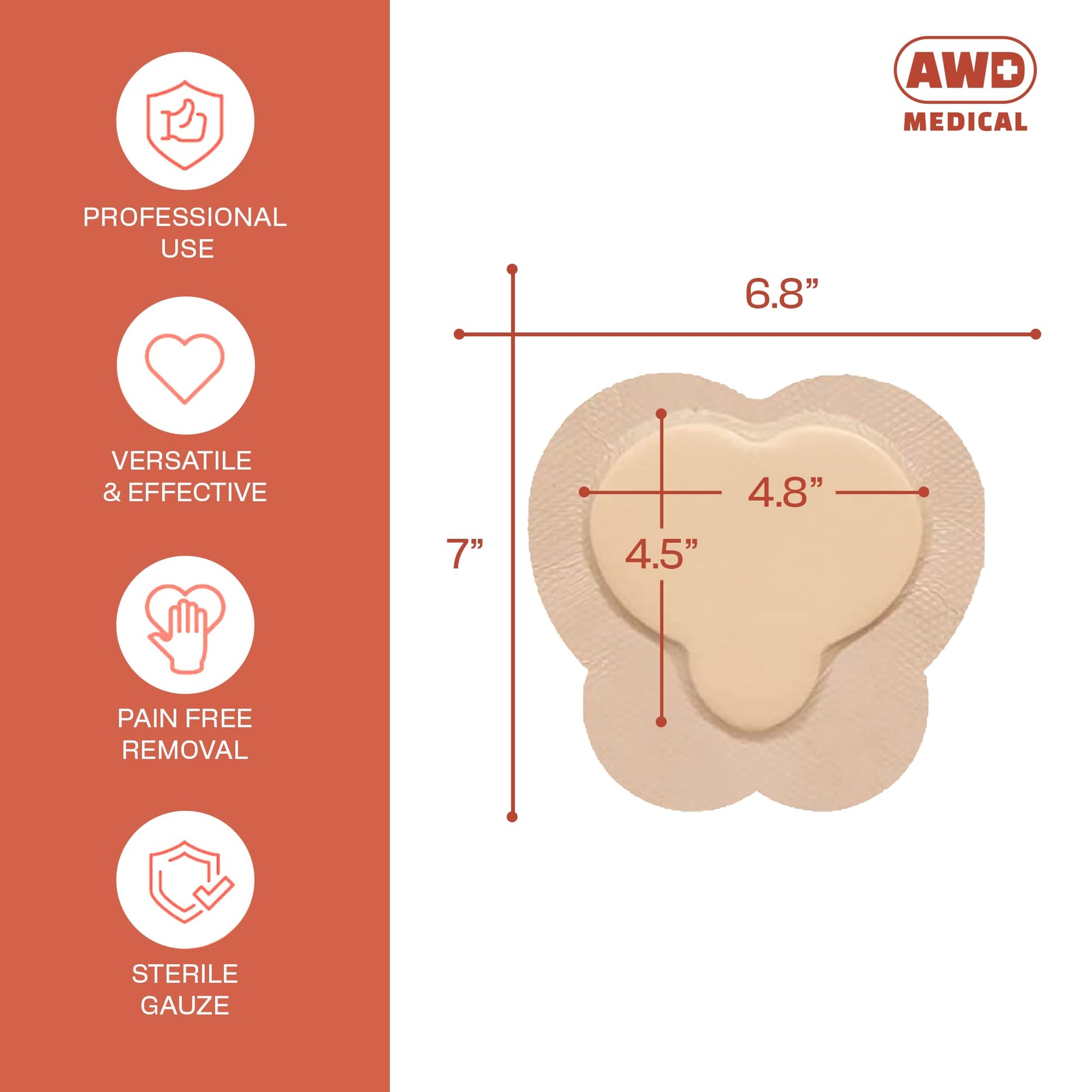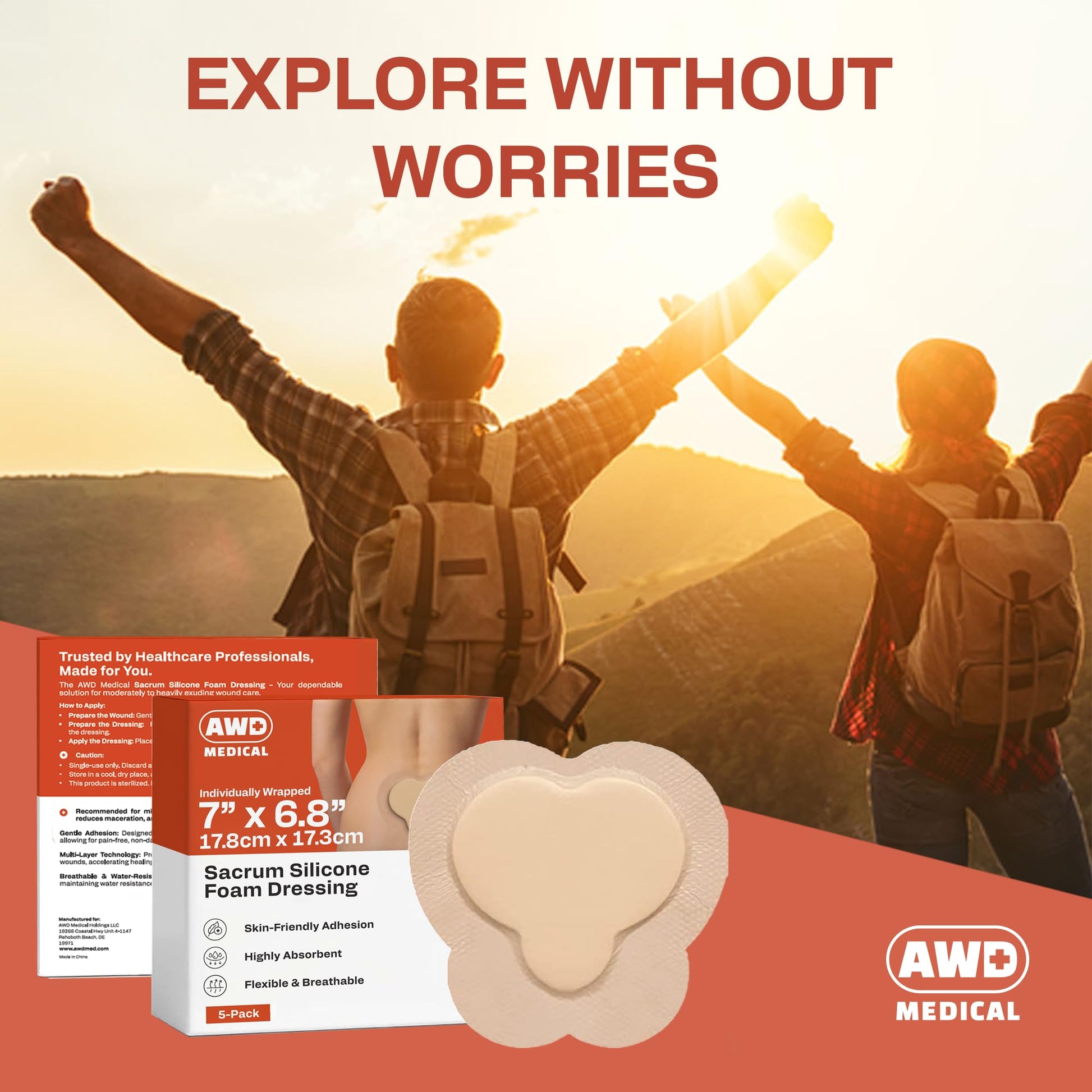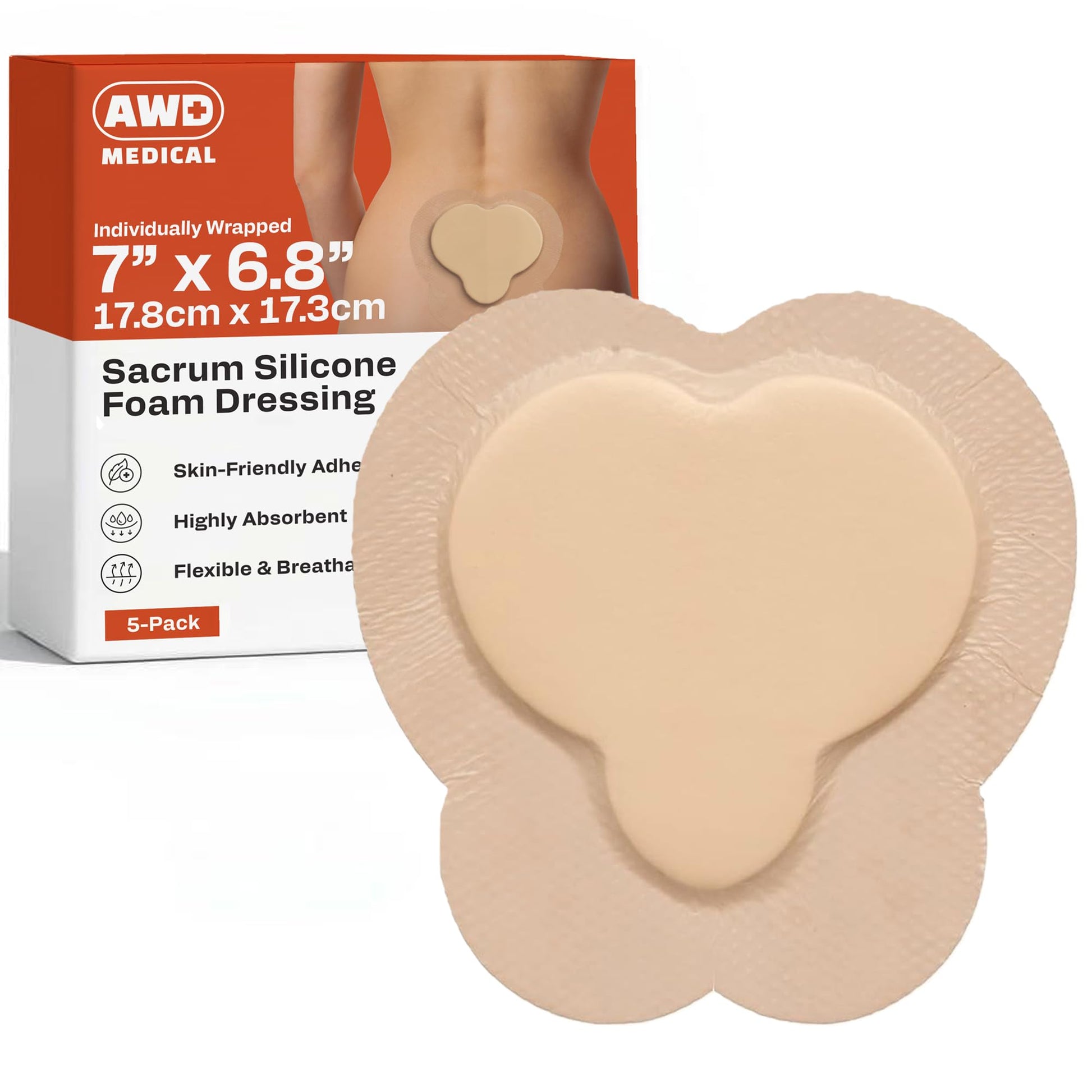 - Sterile Gauze: Sacrum Silicone Foam Dressing with Border; Nonstick pads for wound care, individually wrapped to ensure 100% sterility and prevent contamination of wounds; for use at home and professional facilities.