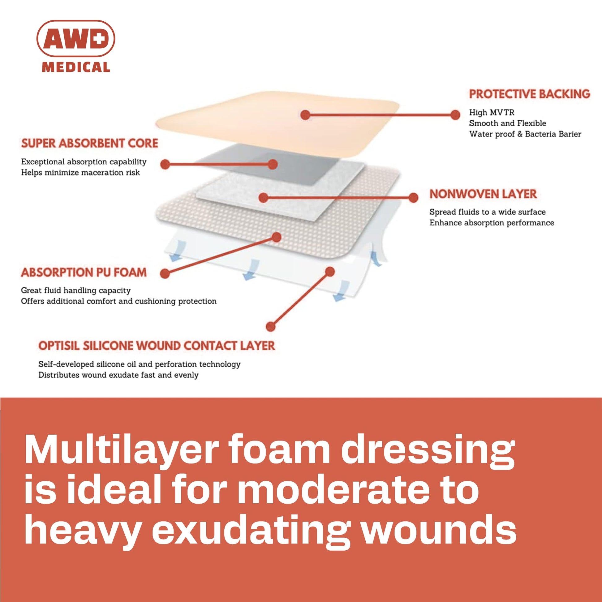 - Versatile & Effective: Multilayer structure our silicone bandages for wounds are ideal for moderate to heavy exuding wounds; can also be used as a nonstick gauze for home use; a must-have for first aid kits.