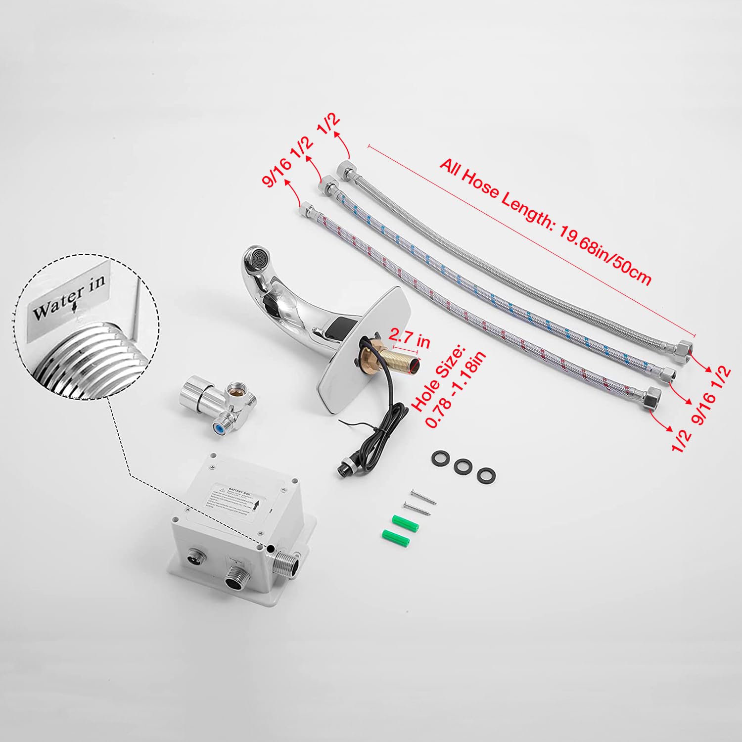 - Battery Powered Convenience: Our faucet's adjustable box is powered by 4 AA batteries. Battery replacement process is simple, and usually replacing the battery once can ensure the stable operation of the faucet for 6-8 months. (Batteries not included in the package)
