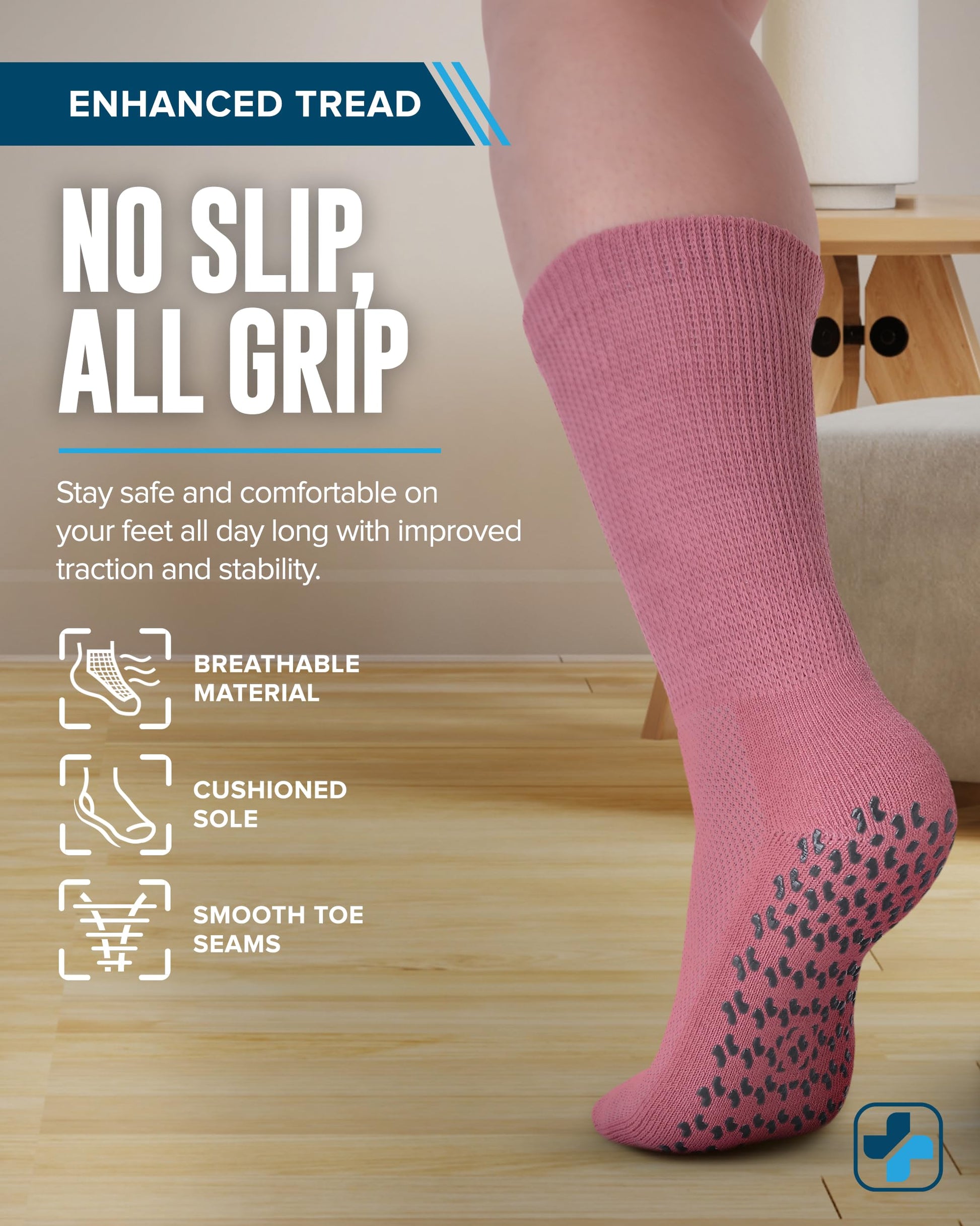 - Safety on Smooth Surfaces - The rubber grips provide traction and stability on smooth surfaces and help prevent falls. For people with limited foot sensitivity, this can provide an added level of security.