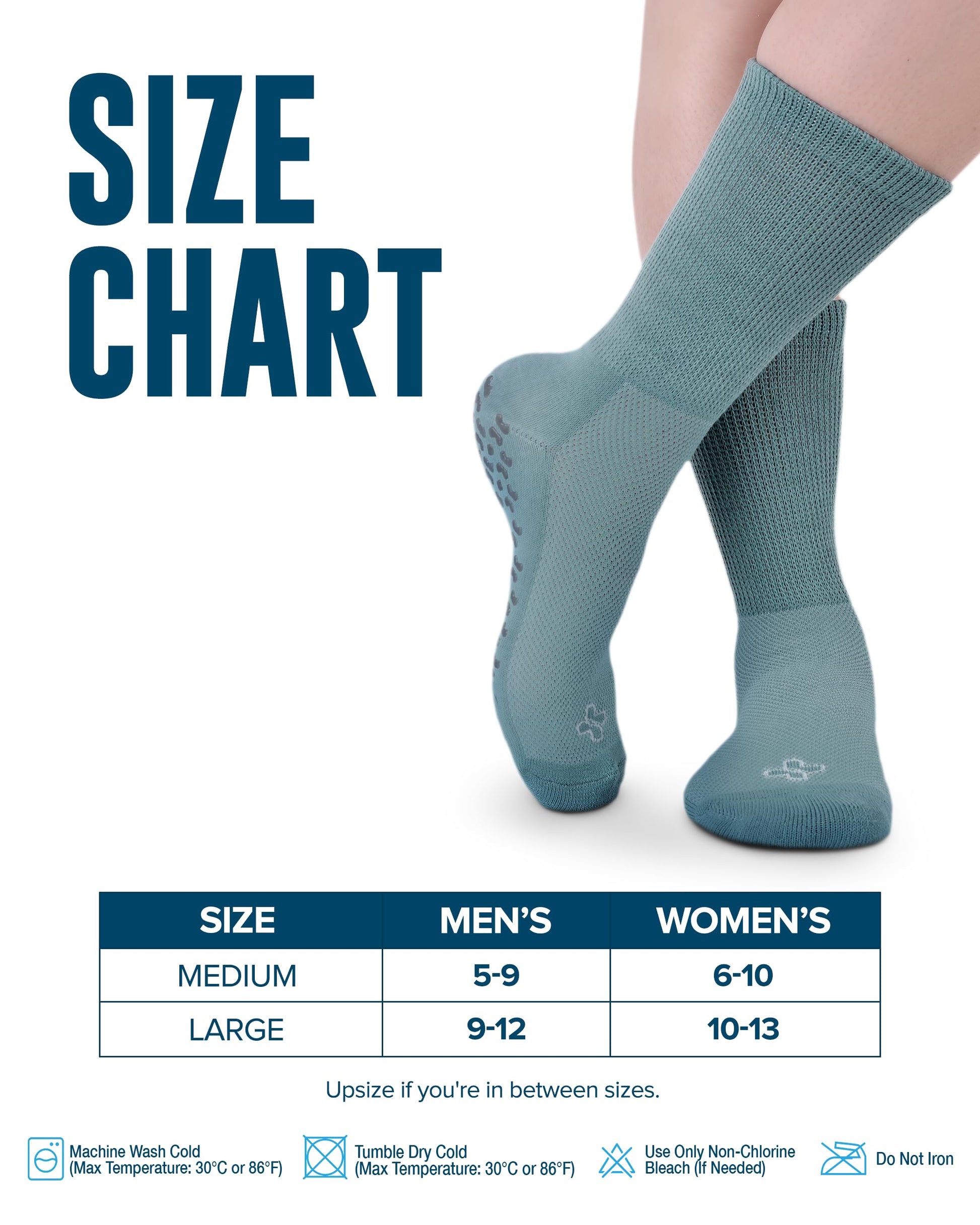 - Sizing Tailored for You – Medium size fits mens size 5-9 and womens 6-10. Large size fits diabetic socks for men 9-12 and womens size 10-13.