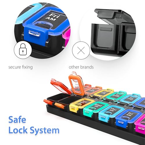 - Advanced Locking System: The daily medicine pill organizer securely closes with the help of an improved locking mechanism, ensuring more dependable and contemporary protection for your vitamins