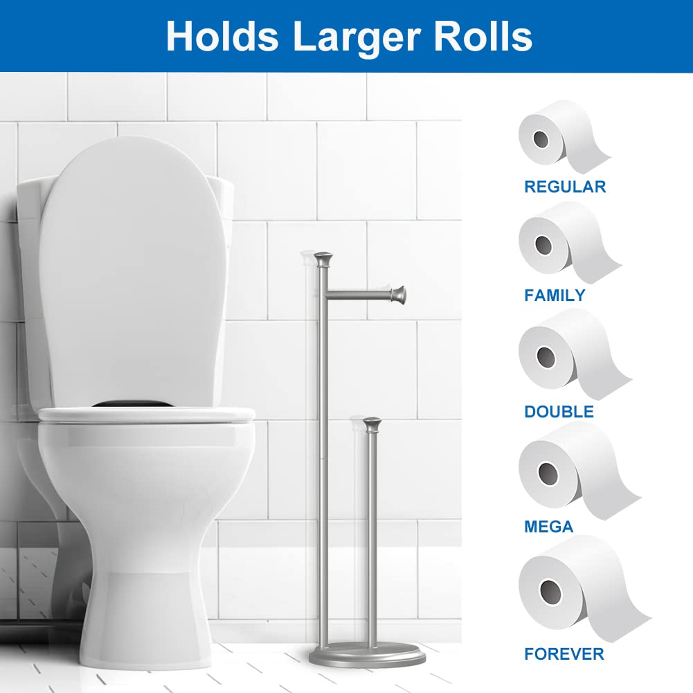- Fits Larger Rolls-The toilet paper holder standing holds any size rolls like Kirkland/Angel Soft/Charmin/Cottenelle/Scott