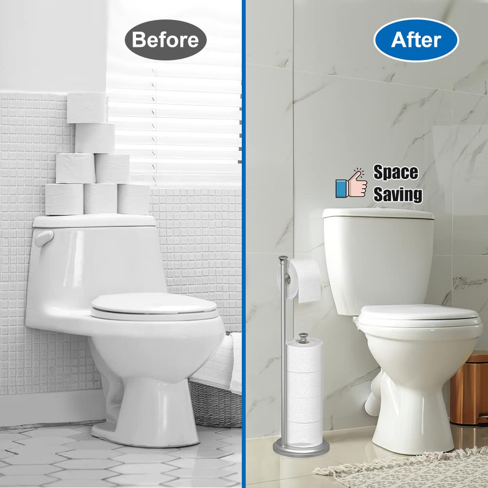 - Holds 5 Rolls-The brushed nickel toilet paper stand can keep 5 toilet paper rolls at once, NEVER be without toilet paper again for your family and guests