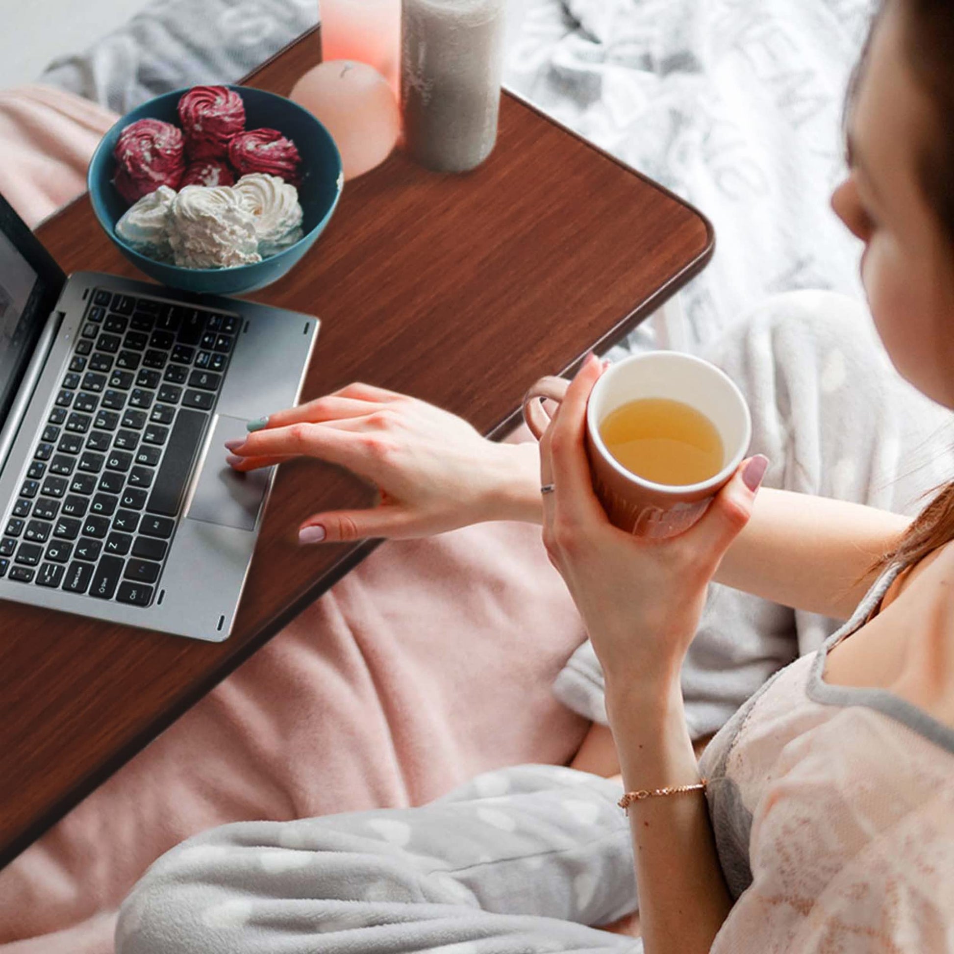 FSA/HSA Eligible, Vaunn Adjustable Overbed Bedside Table With Wheels (Hospital and Home Use)