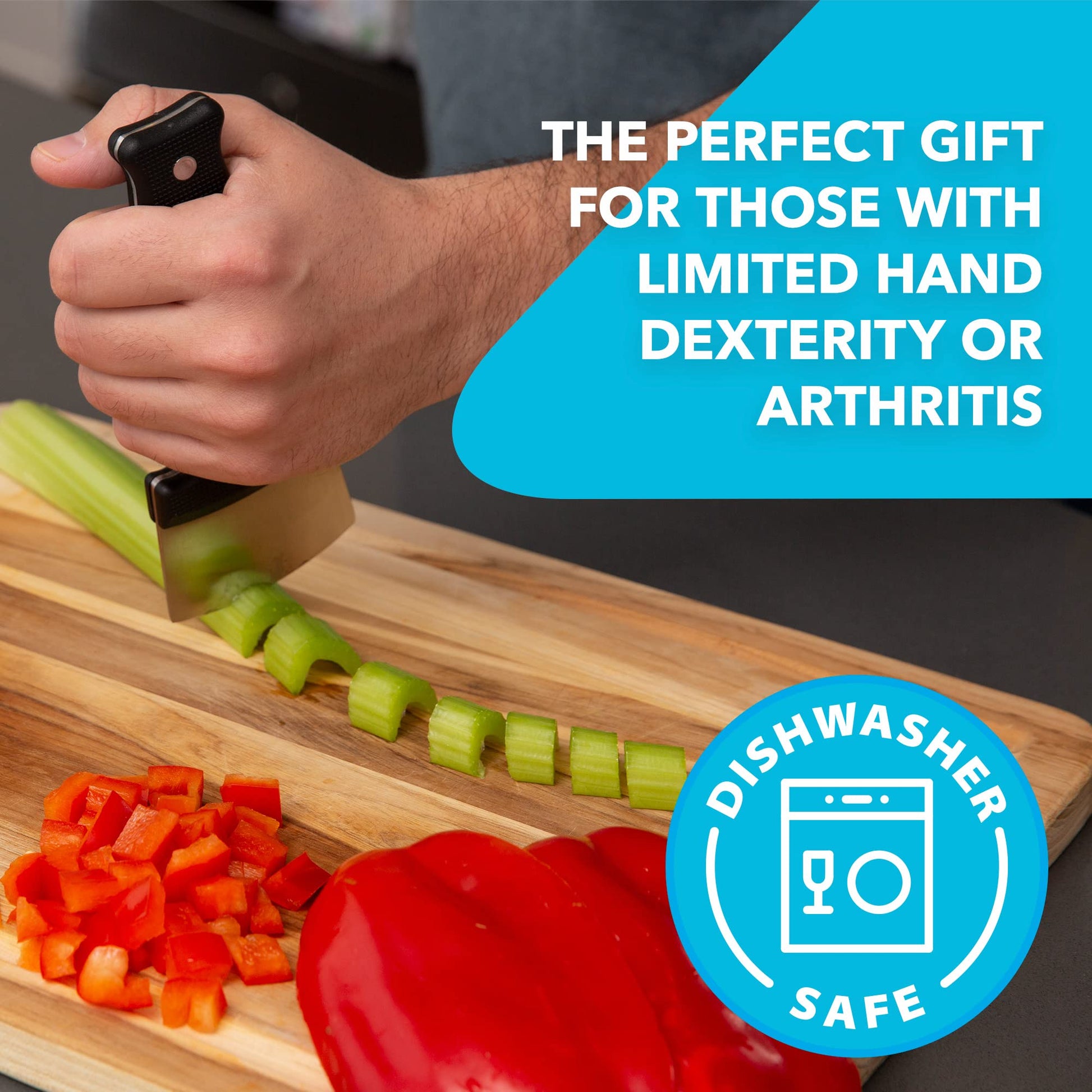 - Value Pack — These adaptive utensils come in a convenient pack of two. Have a clean knife ready while the other one is in the dishwasher. Dishwasher safe on regular cycle - do not use steam/sanitize setting. These knives are thoughtful gifts for disabled people with hand or dexterity limitations