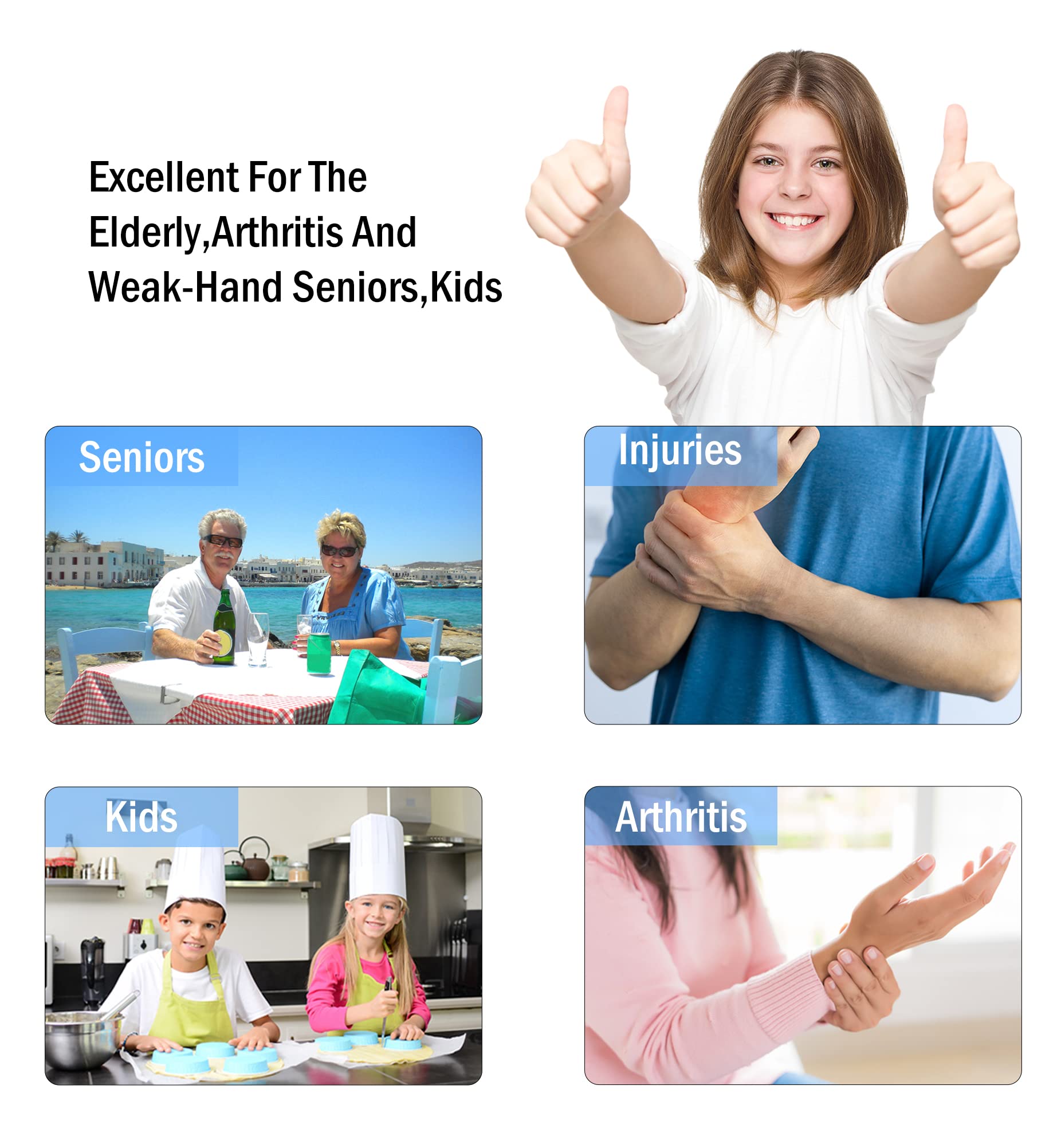 - Specially designed for weak hands - It’s difficult for seniors and arthritis, rheumatoid sufferers, limited hand strength mobility or hand injuries sufferers to complete everyday tasks, especially while cooking. The HUMANFUN set will give your hands the power to open any jar, can or bottle. practical, convenient, save your time and strength, and putting NO extra stress on your fragile hand joint and ligaments!