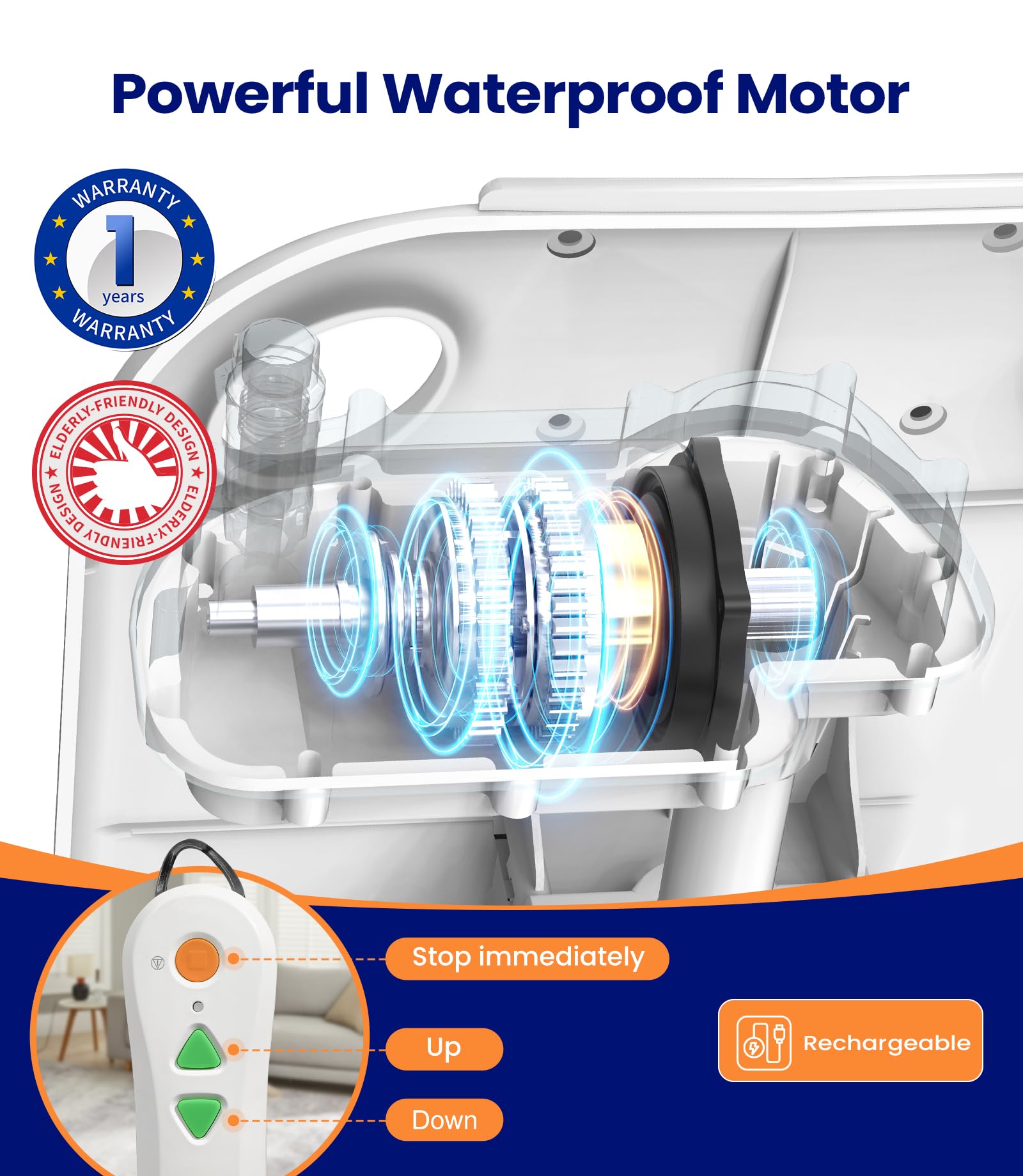 - [Fully Waterproof] - We adopt the IPX8 waterproof standard, the chair lift can be safely submerged.Our chair lift can work normally even in the bathtub, and there are 6 suction cups to improve the stability of the electric chair lift.