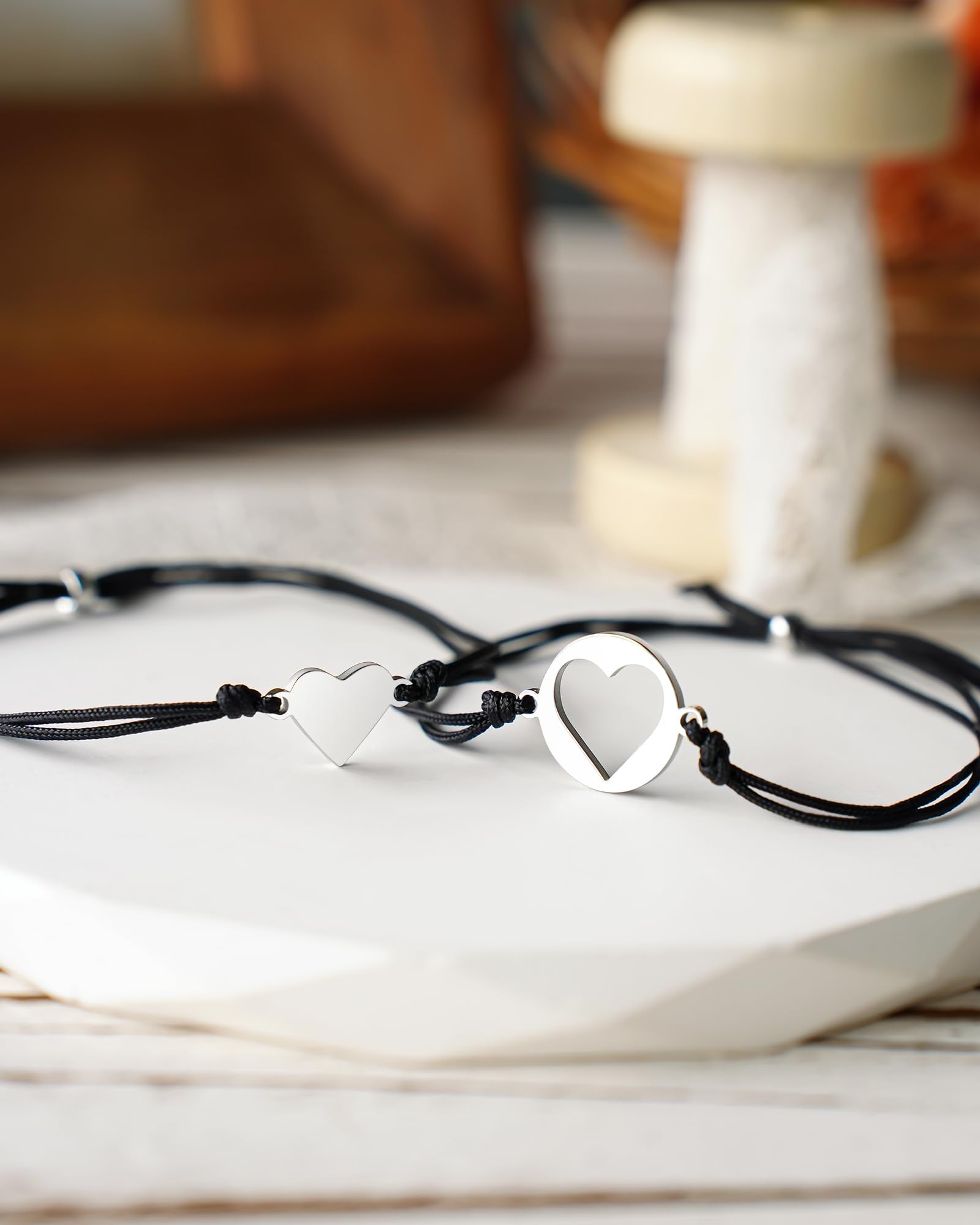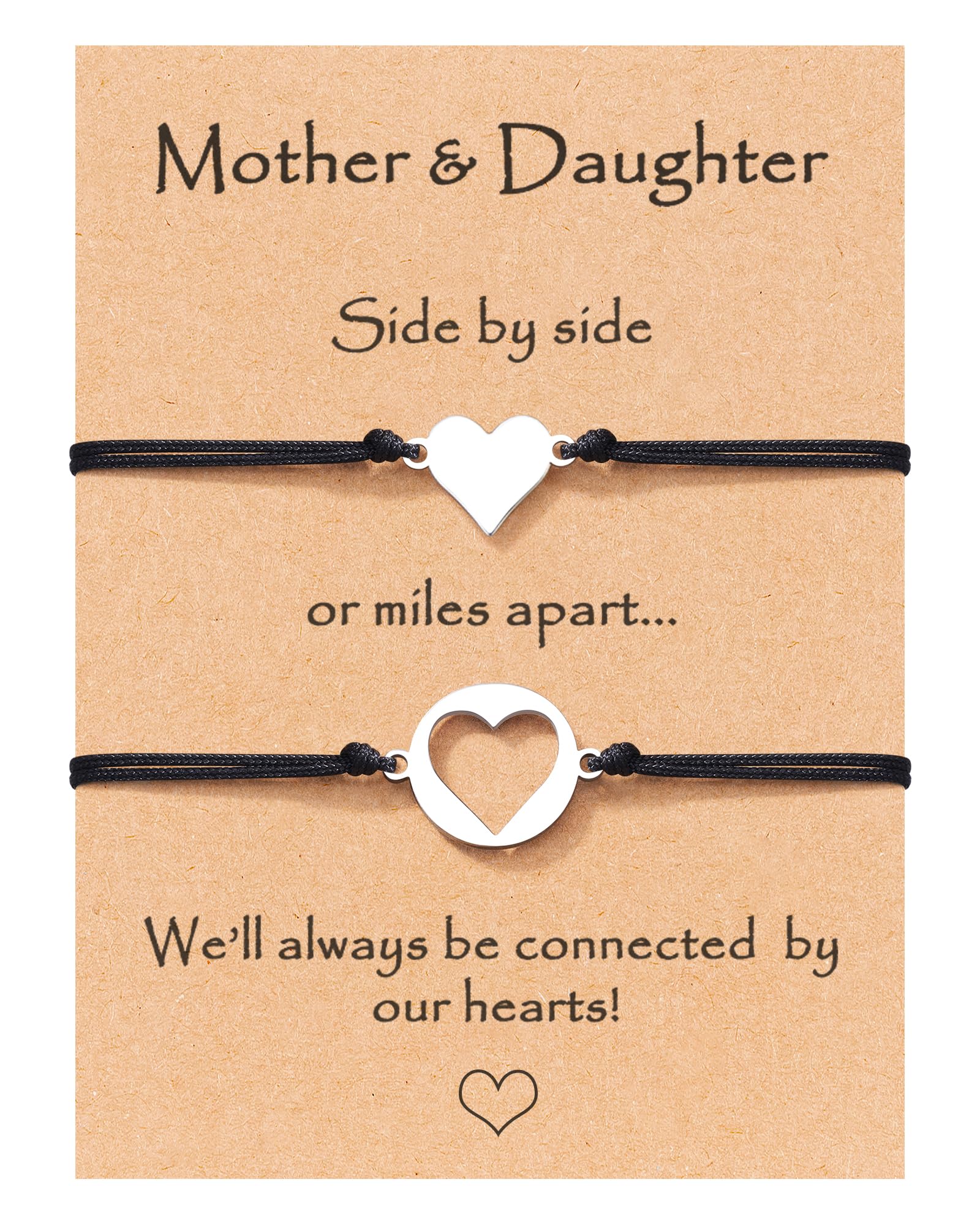 - MATERIAL- Made of Nylon Black Cord and heart charm, this simple cute relationship handmade bracelet set is wonderful to share with mom, and daughters to remind us that even though we get too busy to spend time together, we're always on each other's minds and our love for each other