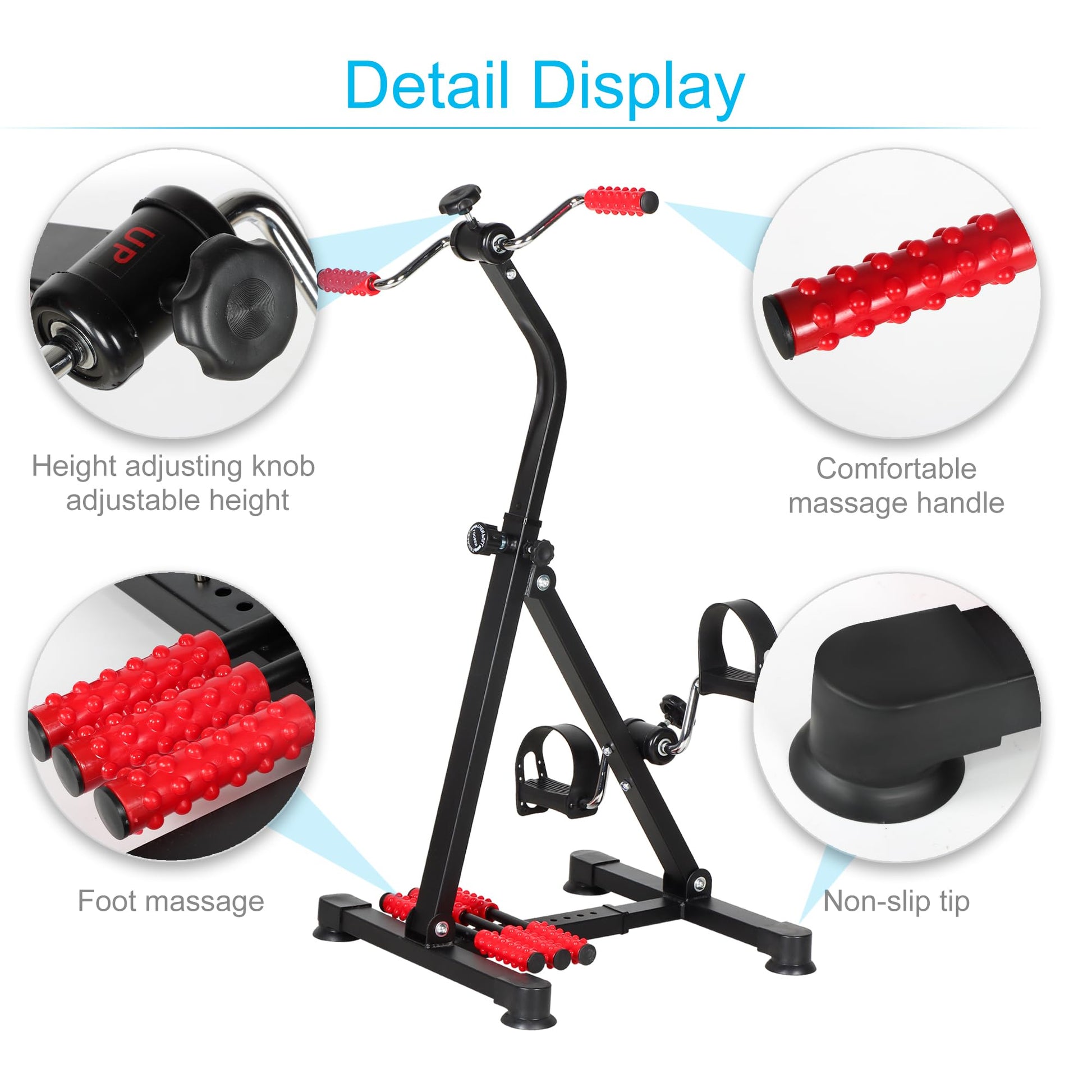 - 【Thoughtful design】Handles and soles have comfortball massage,exercise tired to massage the sole of the foot to relax.Stable triangular structure and 4 disc bases make exercise bike more stable