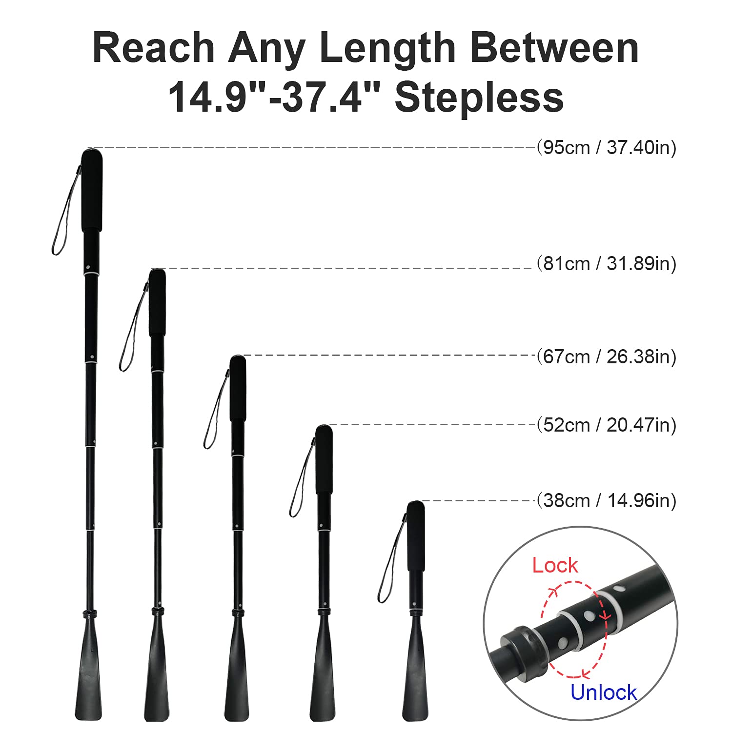 - š Easy to Use š: Connect the two parts easily in seconds. To achieve various length options, just twist the rod counterclockwise a little bit to unlock it, stretch or compress it to the desired length, then twist it clockwise a little bit to lock it, and enjoy the shoe helpers to put on your shoes